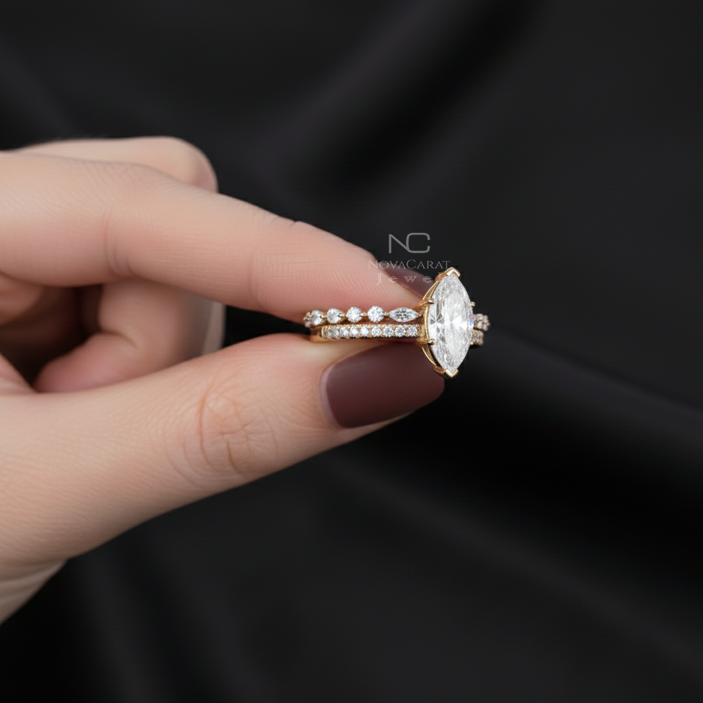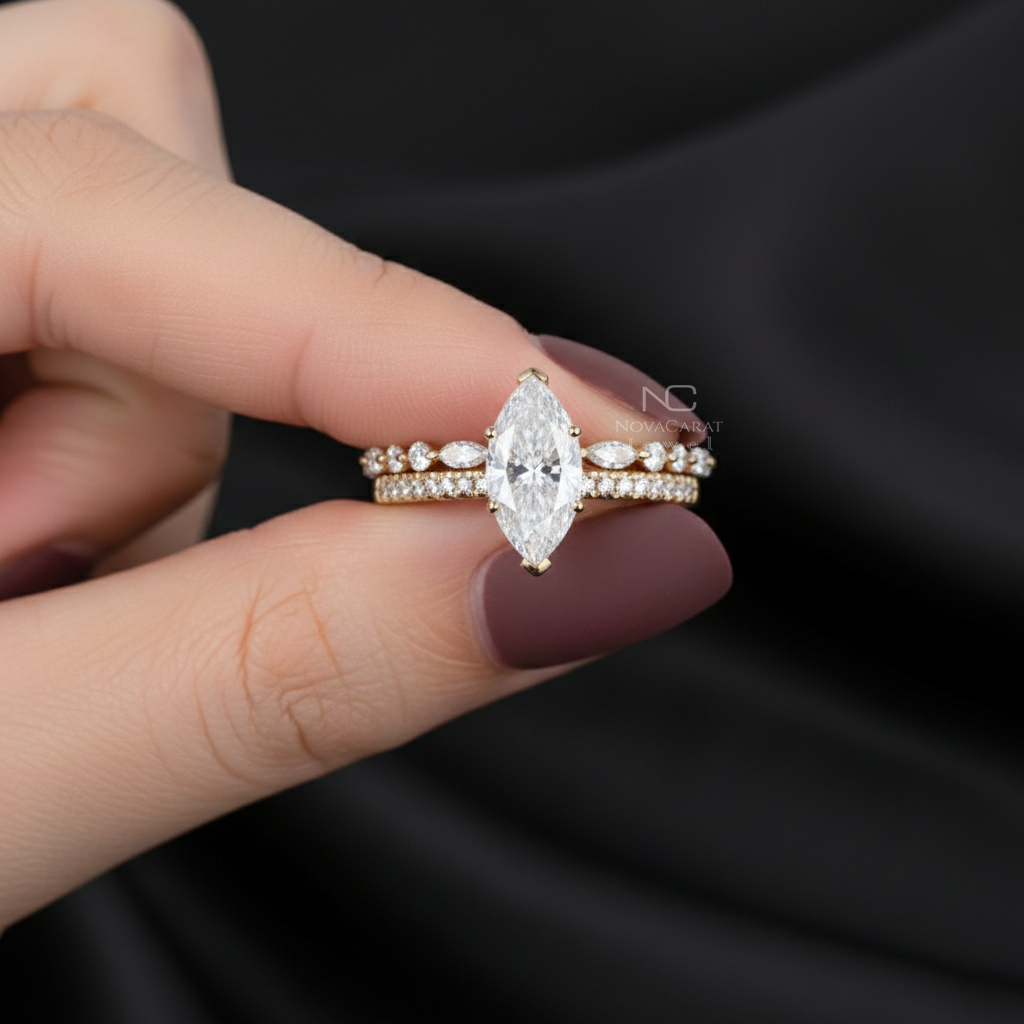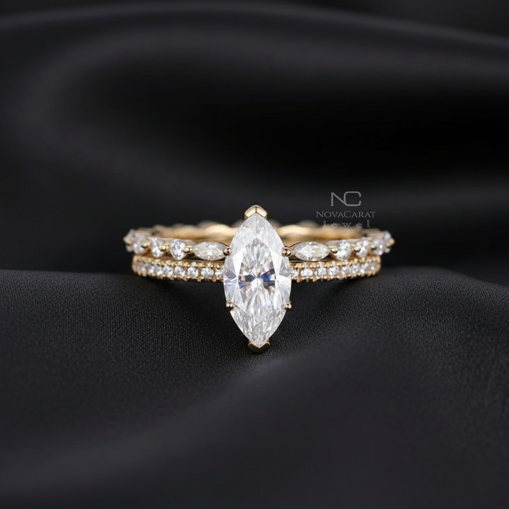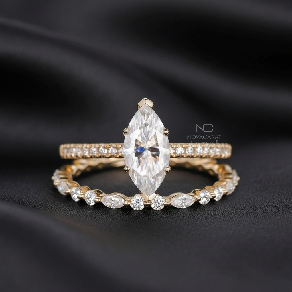 Engagement Ring, Gift for Women, Marquise Cut Ring, Marquise Moissanite, Wedding Ring, Bridal Ring Set, Vintage Ring Set, Moissanite Ring Set, Vintage Engagement, Marquise Diamond