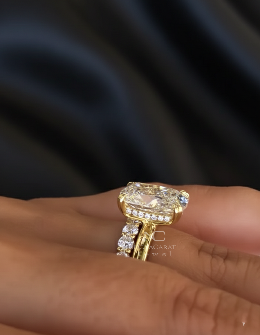 3 CT Elongated Cushion Cut Moissanite Engagement Ring Set, 14K Solid Gold Anniversary Ring Set, Full Eternity Round Cut Band, Wedding Ring Set
