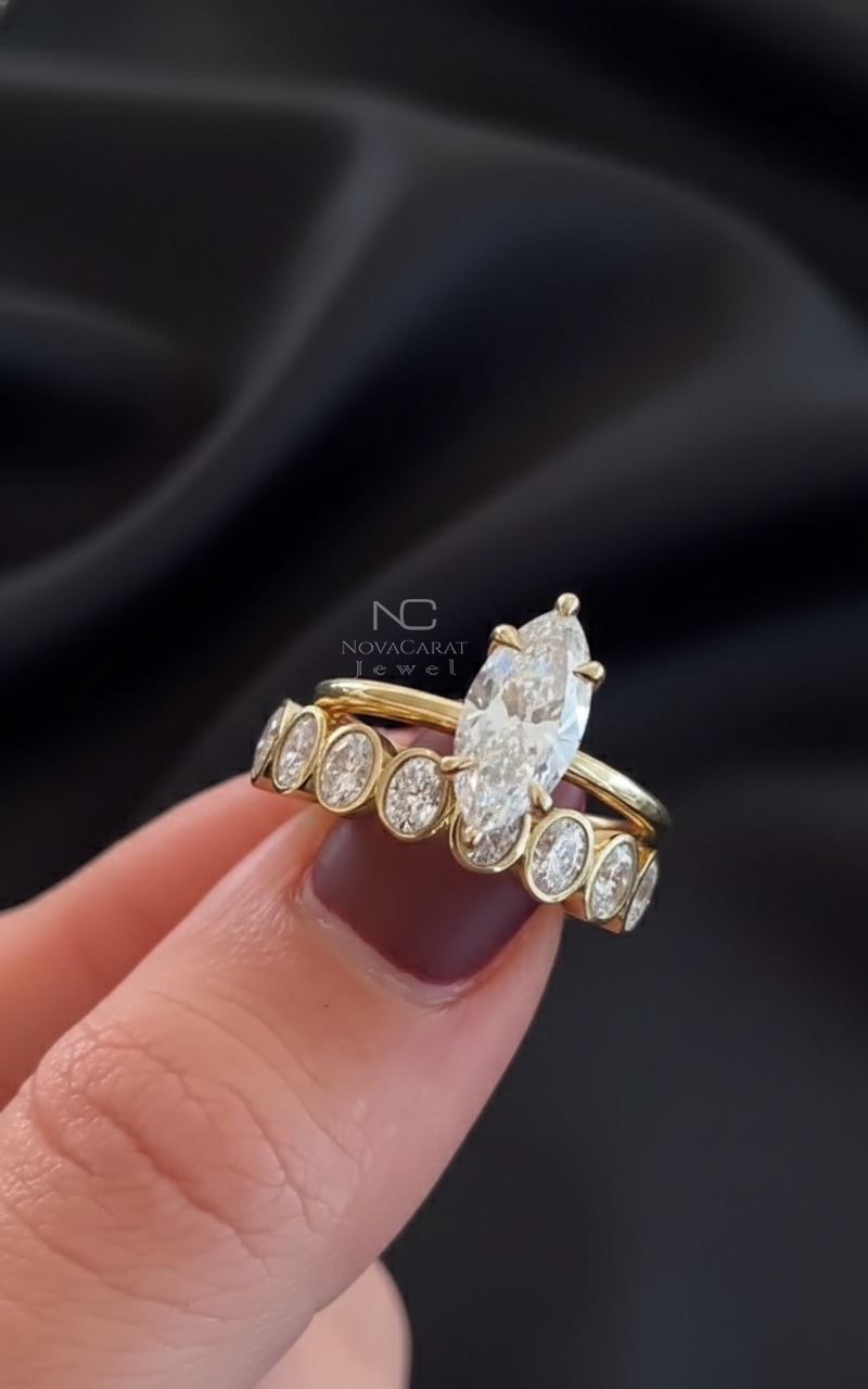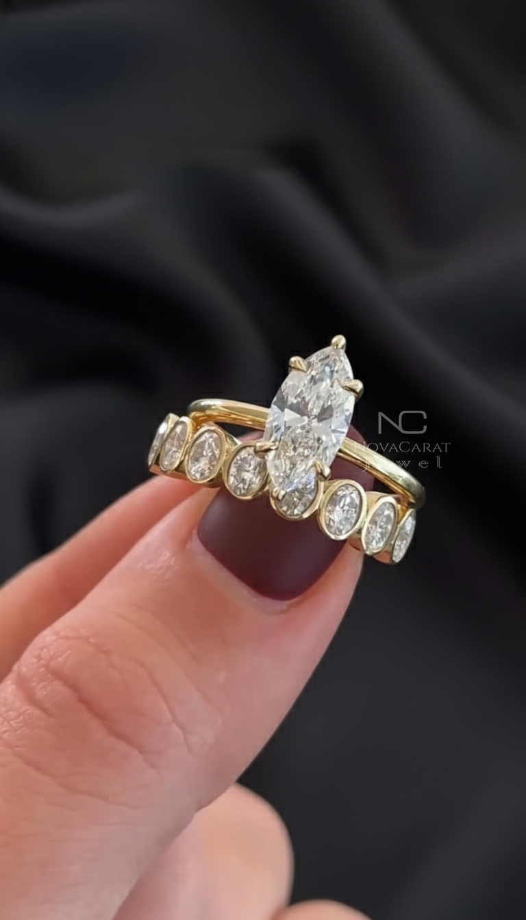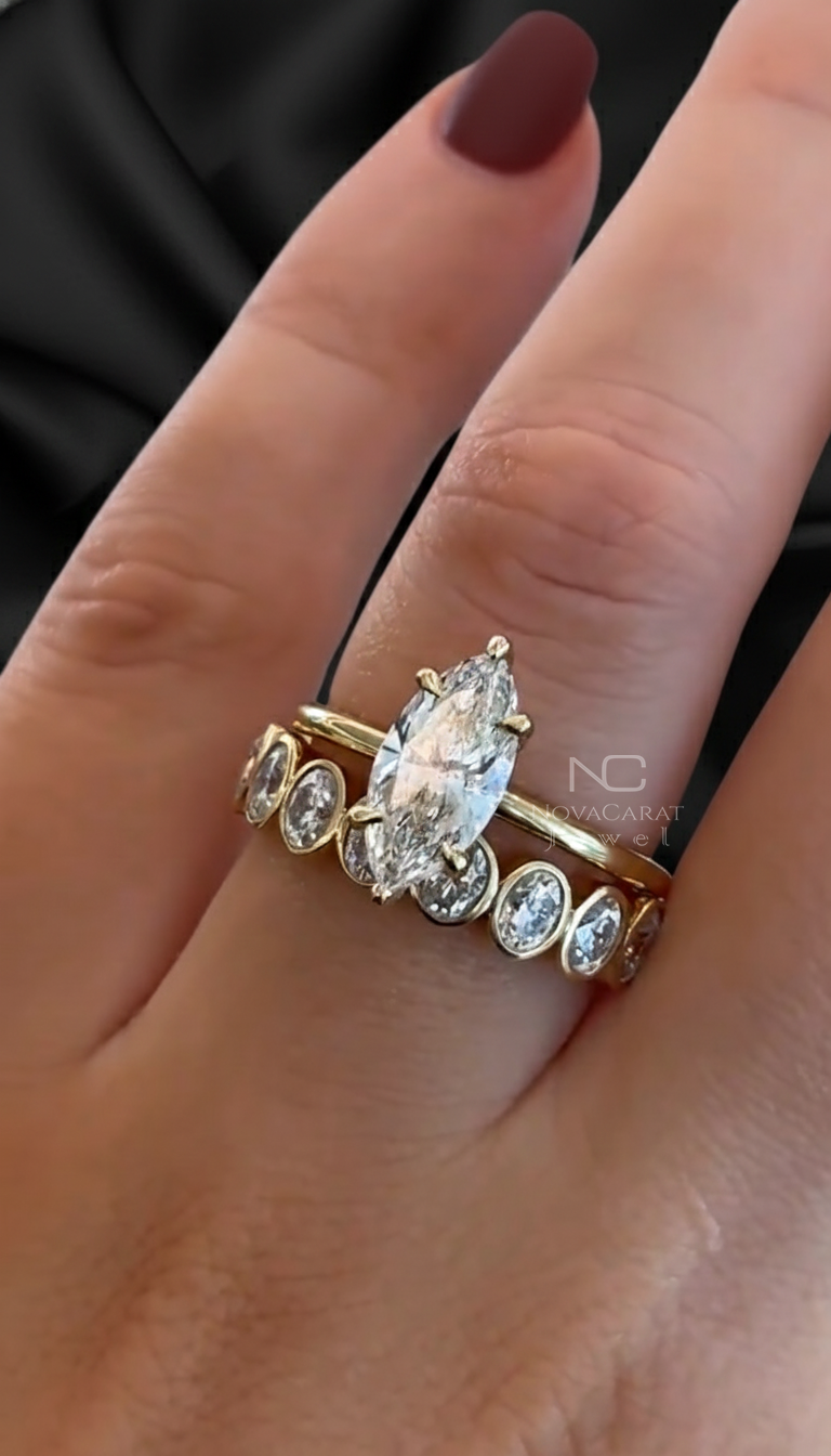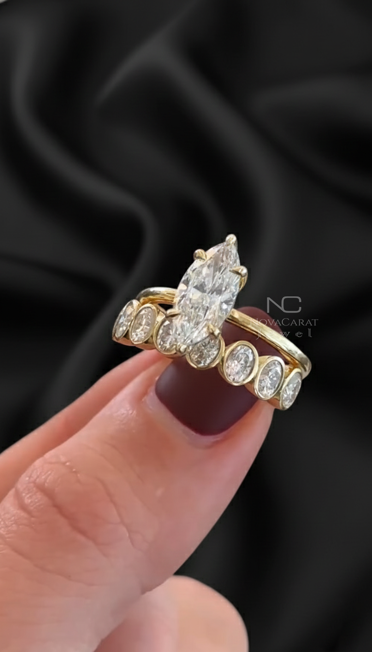 Engagement Ring, Gift for Women, Marquise Cut Ring, Marquise Moissanite, Wedding Ring, Bridal Ring Set, Vintage Ring Set, Moissanite Ring Set, Vintage Engagement, Marquise Diamond