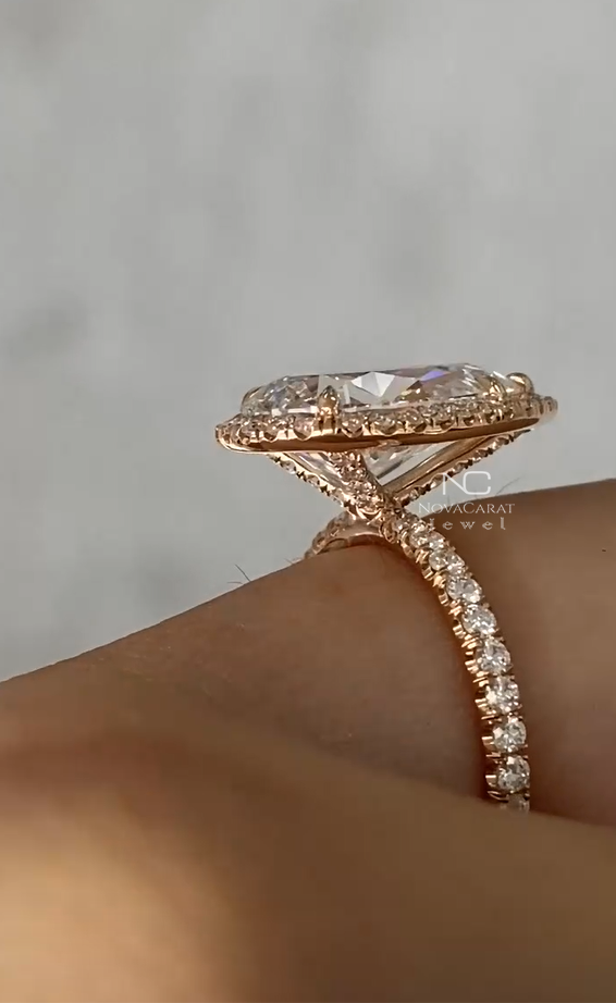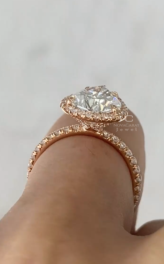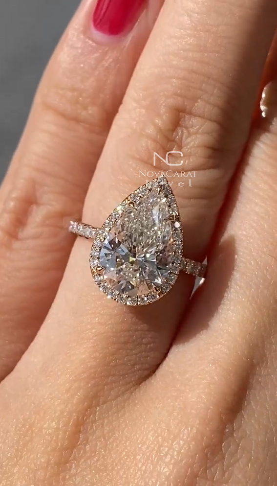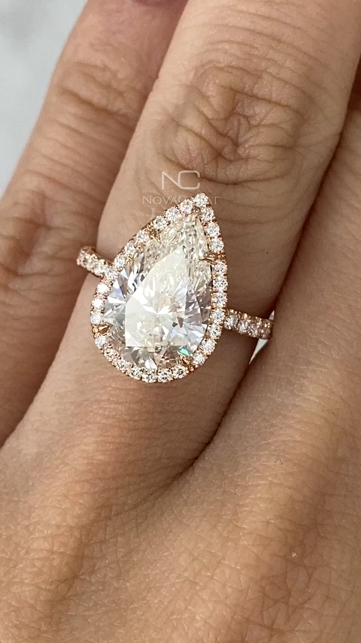 3ct Pear Cut Moissanite Hidden Halo Engagement Ring
