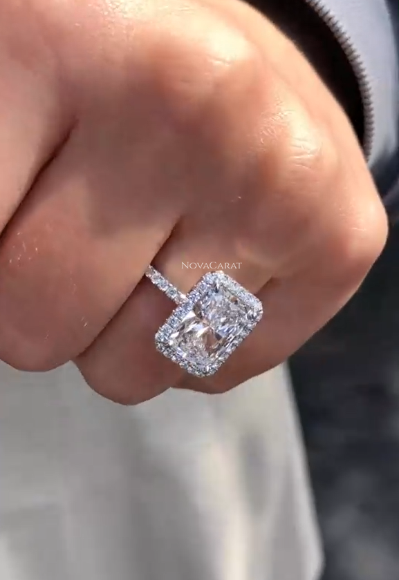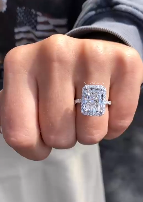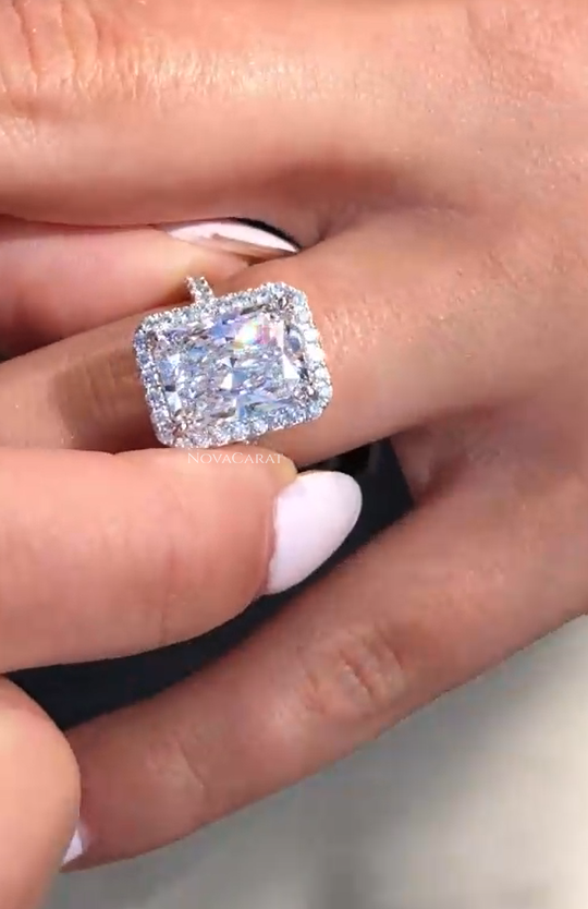 5 CT Radiant Cut Moissanite, Moissanite Engagement Ring, 14K Gold Halo Wedding Ring, Promise Ring Gift for Her, Wedding Anniversary.