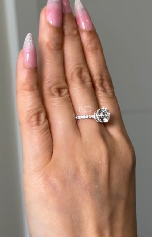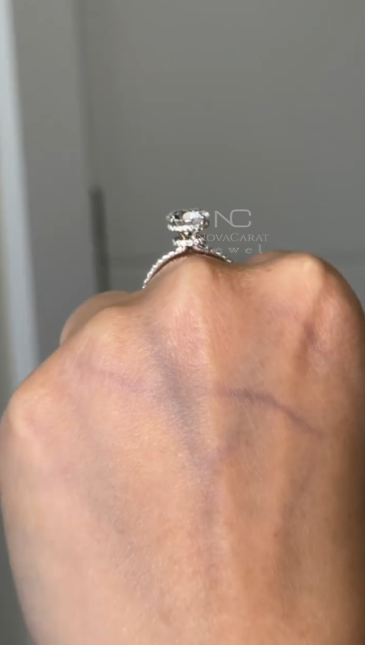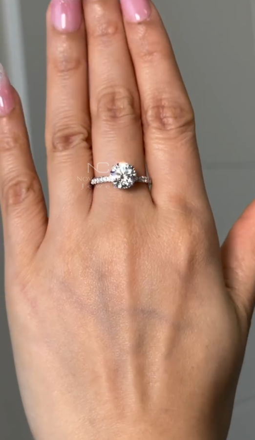 Rings for Women, Engagement Ring, Engagement Gifts, Moissanite Jewelry, Ring Engagement, Wedding Ring, 14K Gold Ring, Gold Engagement Ring, Moissanite Ring Band, Round Pave Ring, Moissanite Pave Ring, 2ct Round Moissanite