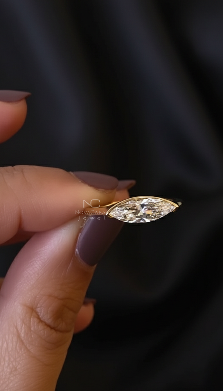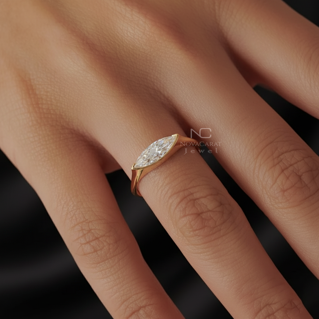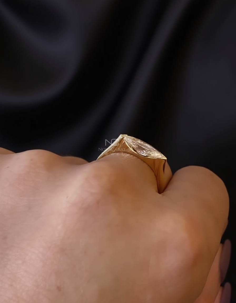 Moore Perfect Pieces, Thegoldhouse, Theamericangoldhouse, Signet Ring Women, Piquantjewels, Brazilian Cut Ring, Bezel Marquise East West Band, 3 Ct Stone, Marquise Cut Moissanite, Bezel Set Moissanite, Moissanite Bezel, Moissanite Ring, Moissanite 14k