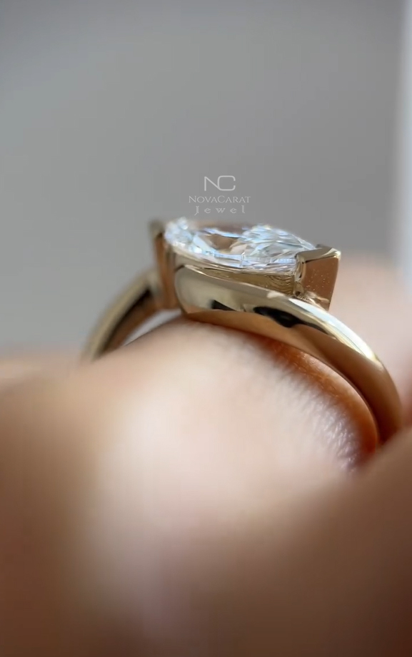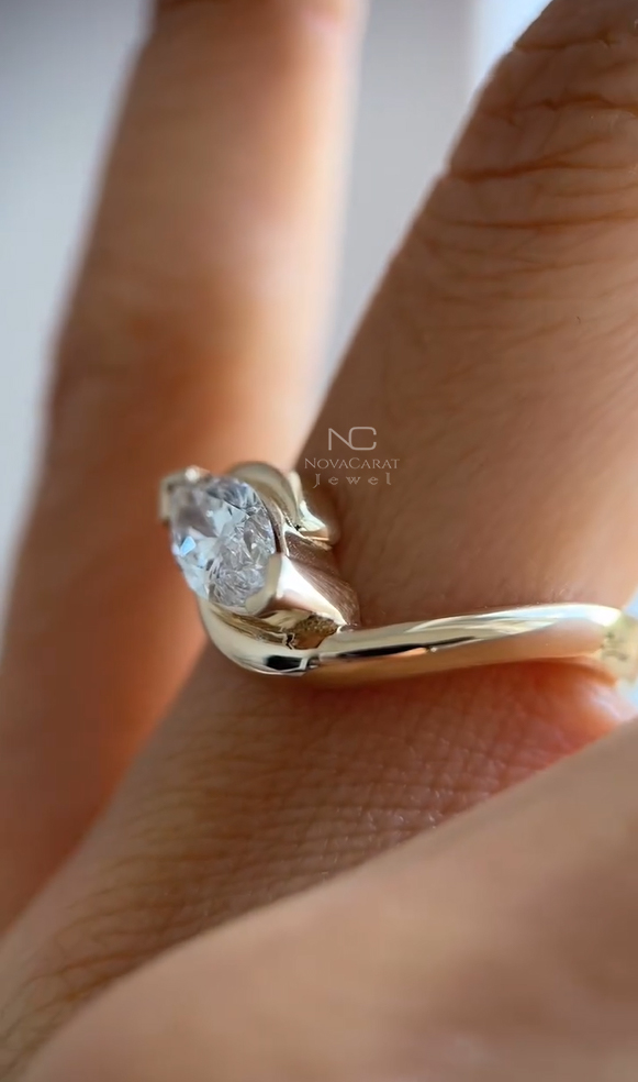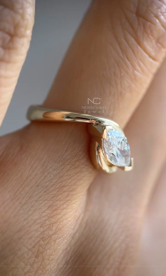 Modern Marquise Twist Engagement Ring | 14K Gold Wrap Setting | Unique Solitaire Ring