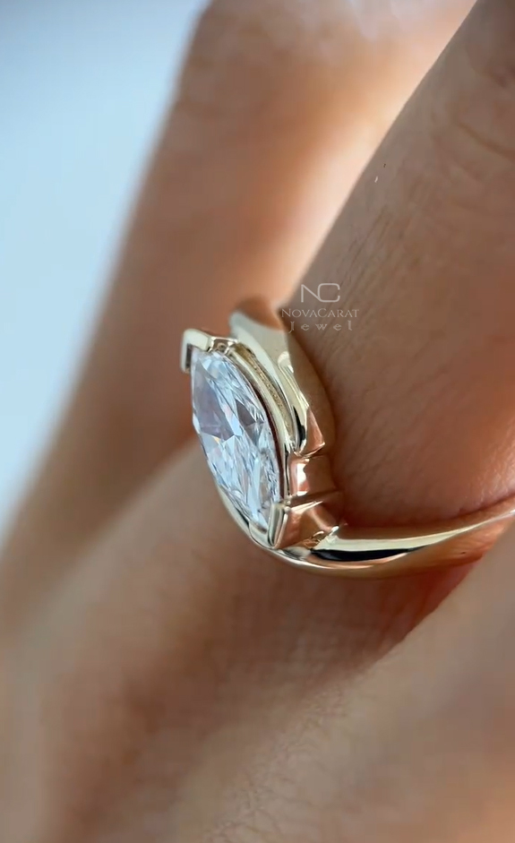 Designed for those who love modern elegance with a bold twist, this 14K gold ring offers a sleek and minimal profile while showcasing the brilliance of the marquise diamond.