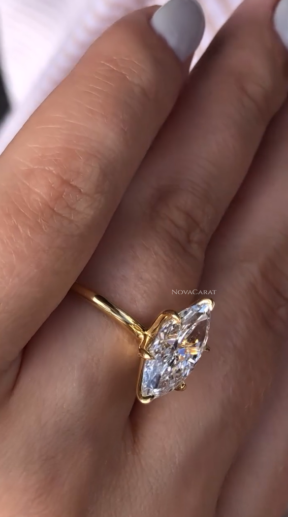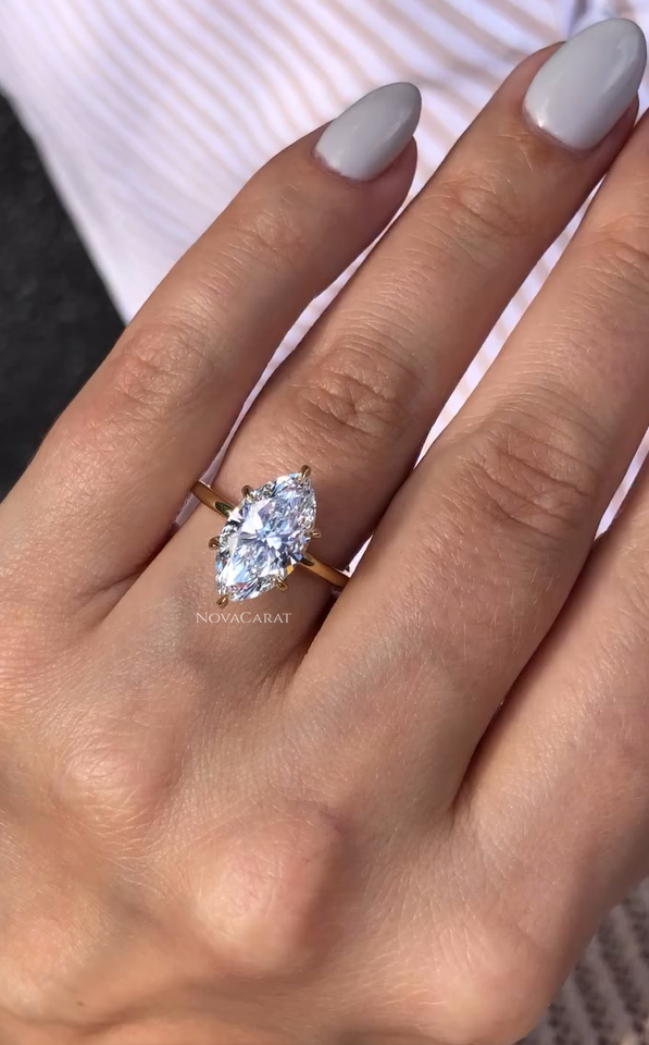 2 Carat Marquise Moissanite Solitaire Ring, 14k Solid Gold Engagement Ring, Marquise Cut Wedding Ring for Her, Gift for Her, 6 prongs Setting, Promise Ring Gift for Her.