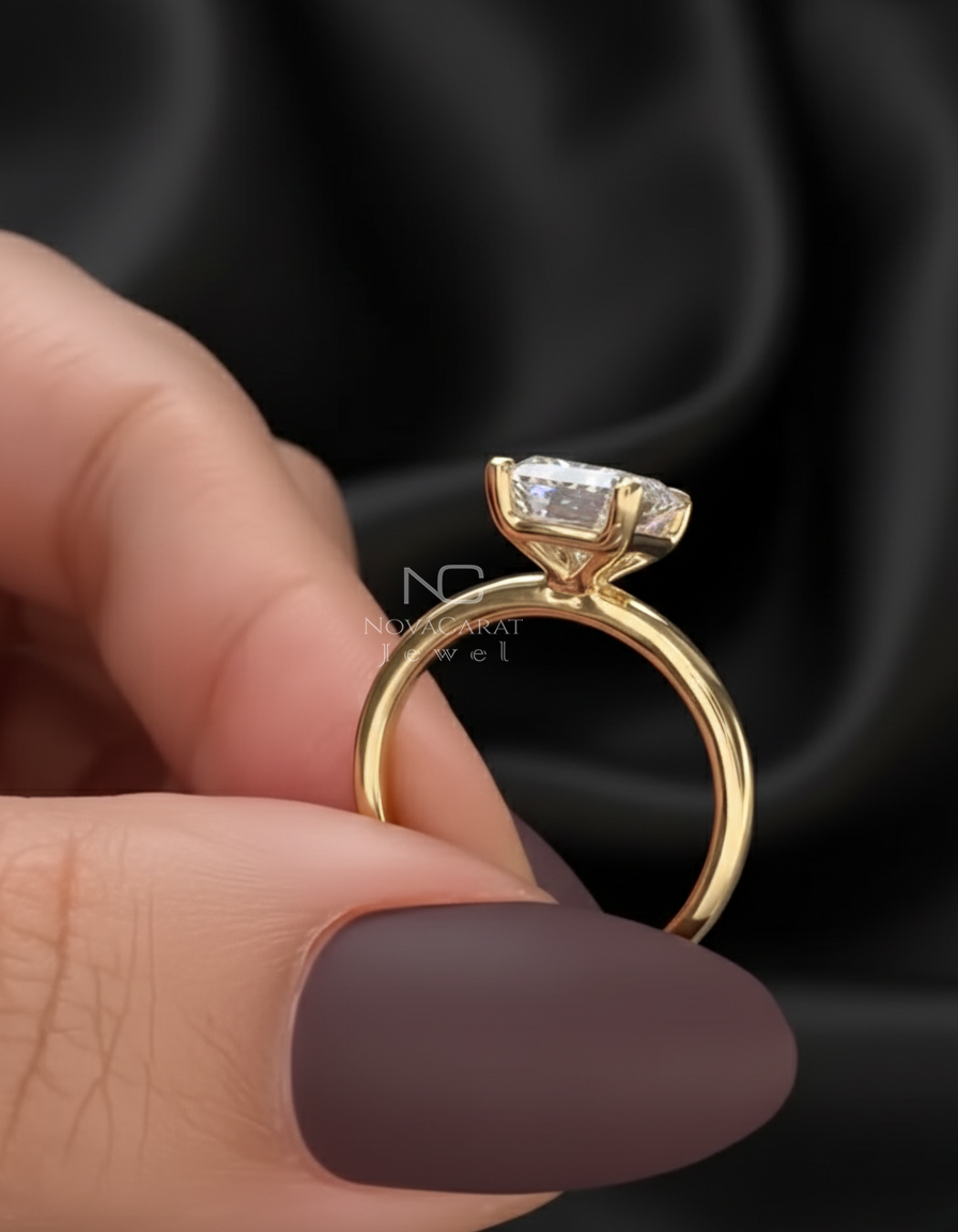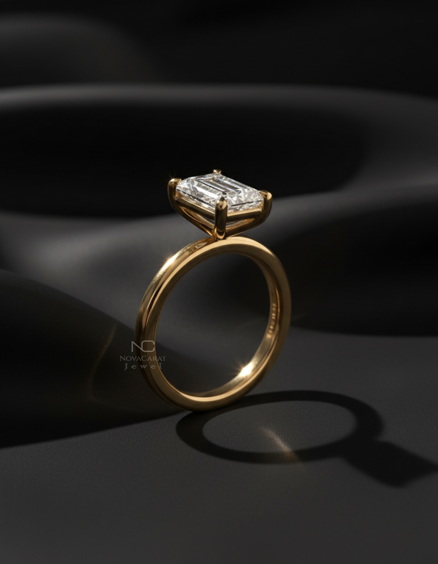 18k Gold Ring, 14k Moissanite Ring, 14k Solid Gold Ring, Gold Engagement Ring, Gold Moissanite Ring, Solitaire Ring, Solitaire Moissanite, Emerald Cut Diamond, Emerald Moissanite