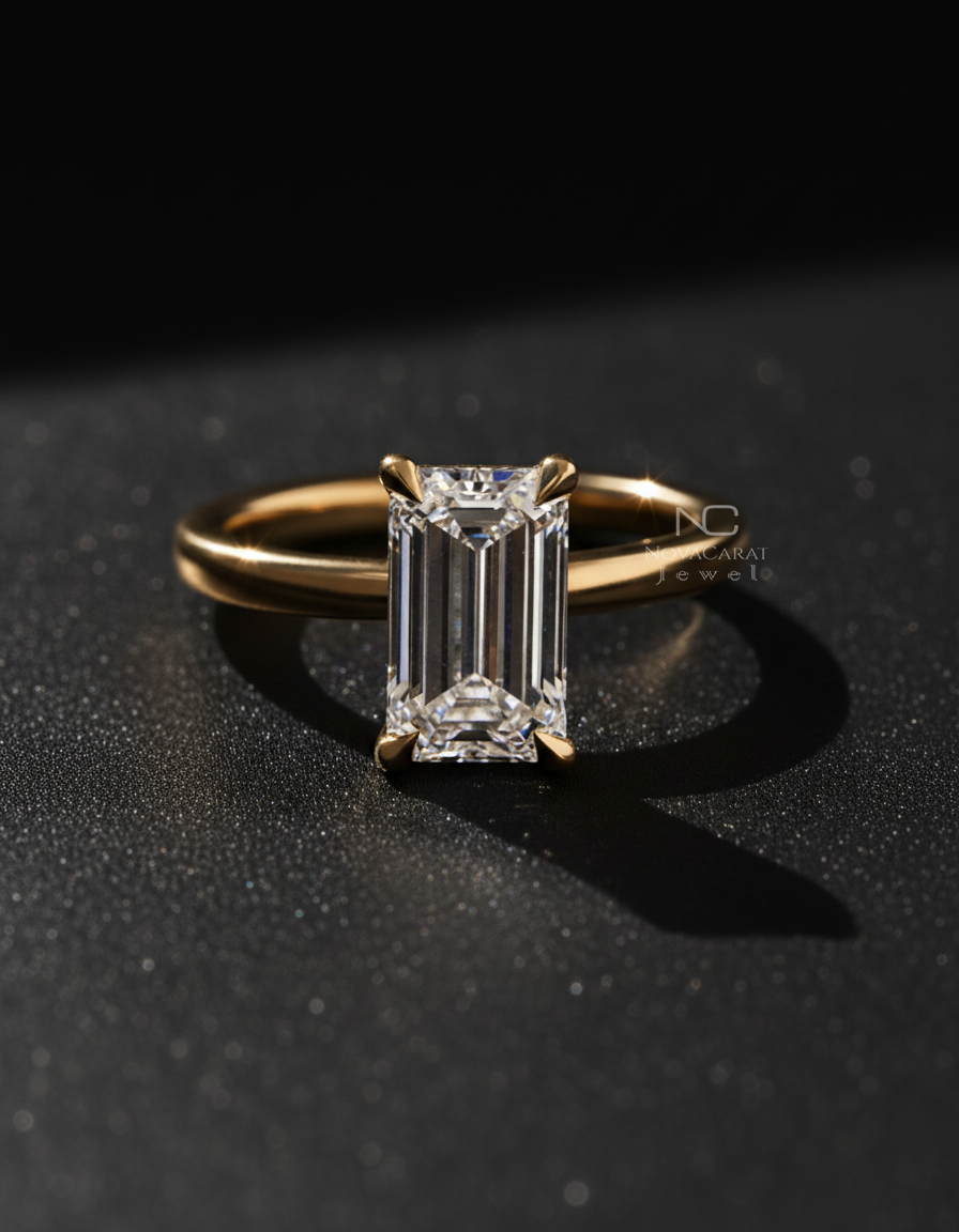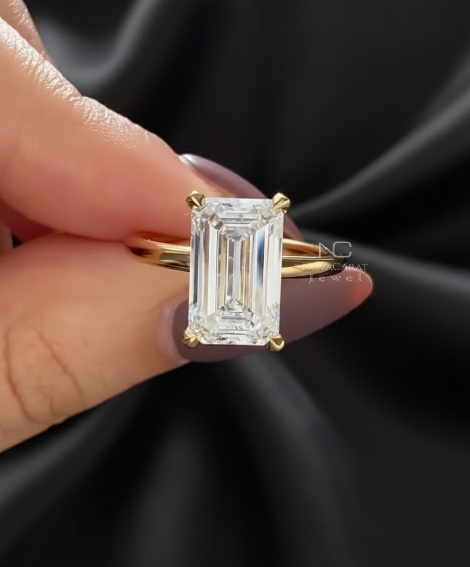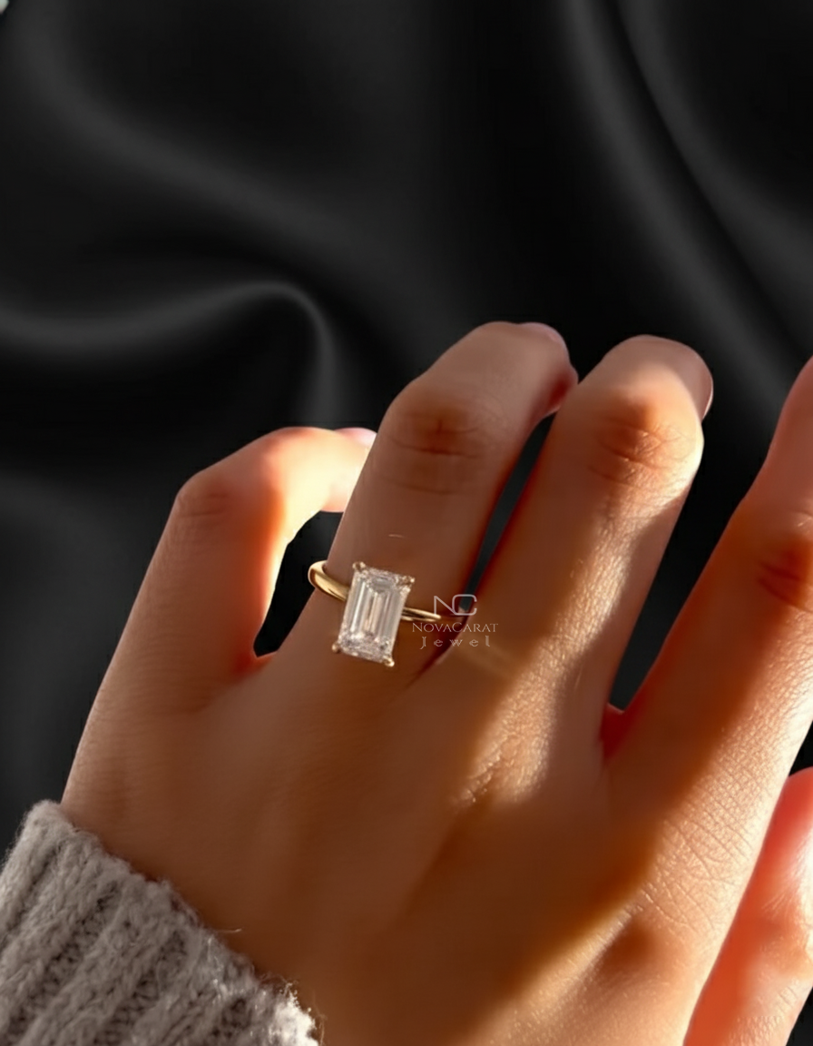 Engagement Ring, Wedding Ring, Emerald Diamond Ring, Moissnite Diamond, Emerald Cut Diamond, Diamond Ring for Her, Anniversary Gifts, Ring for Women, Solitaire Ring, Mothers Day Gift, Certified Diamond, Double Prong Ring, Emerald Moissanite