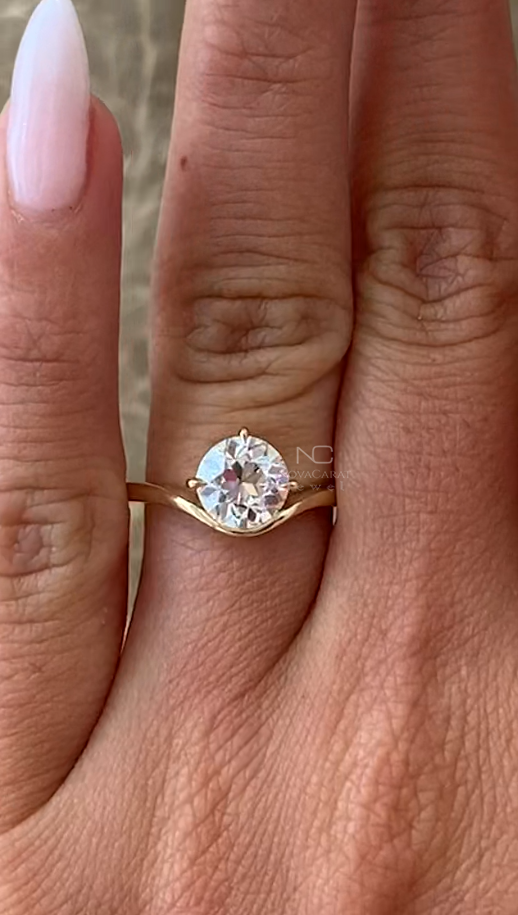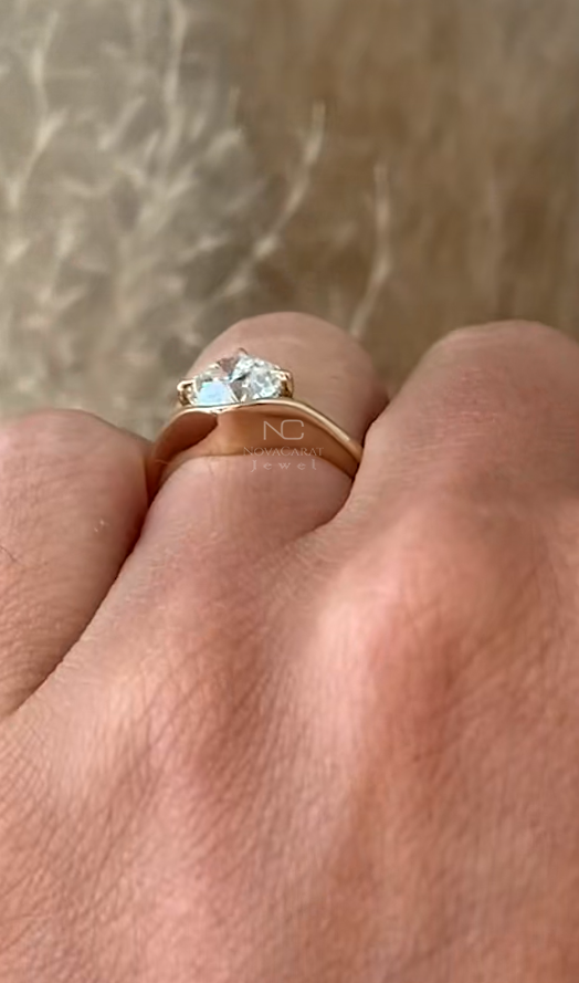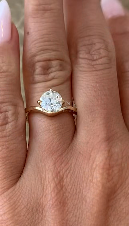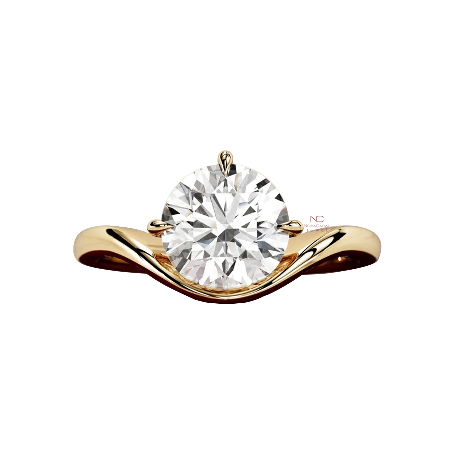 2ct Moissanite Diamond Curved Solitaire Ring, Unique Nested Round Brilliant Diamond Engagement Ring, Gold Promise Ring, Solitaire Moissanite Ring