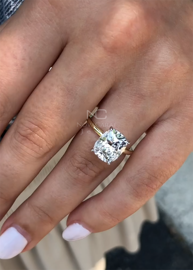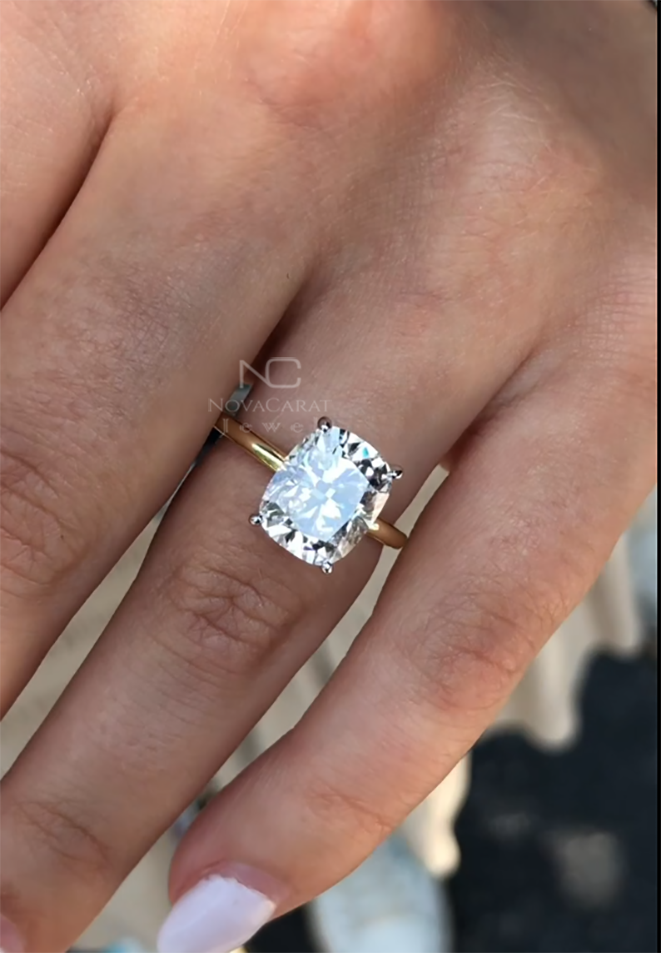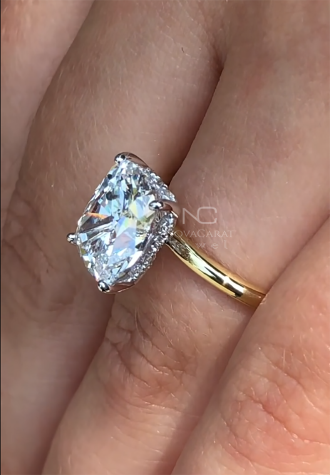 3 CT Cushion Cut Moissanite Engagement Ring, 14K Solid Gold Ring, Hidden Halo Ring, Solitaire Ring, Promise Ring, Proposal Ring For Women