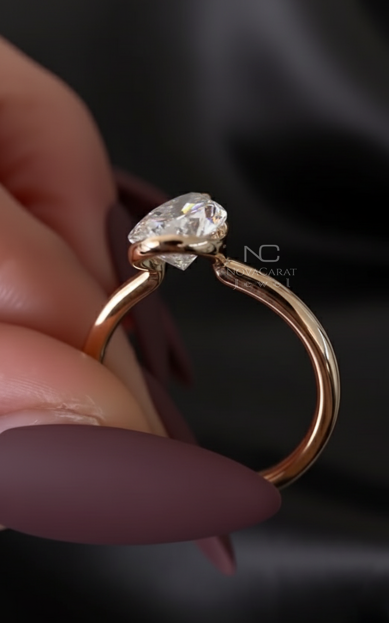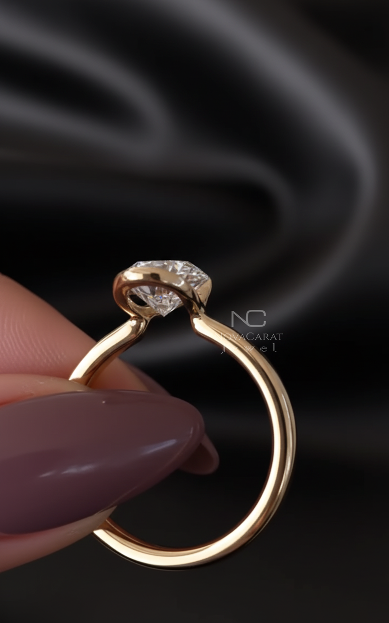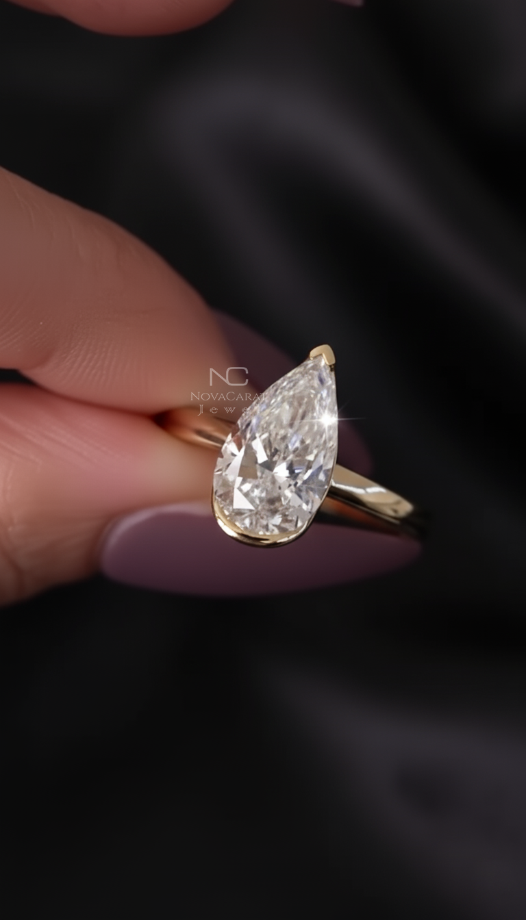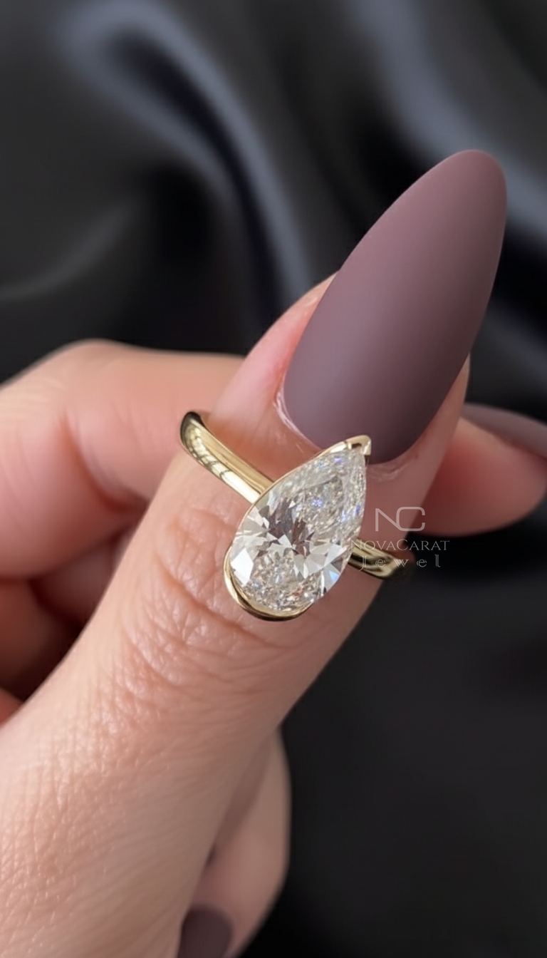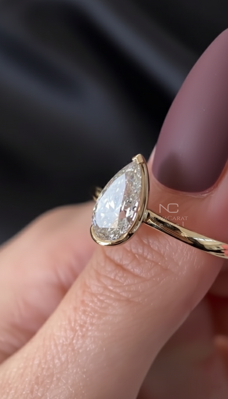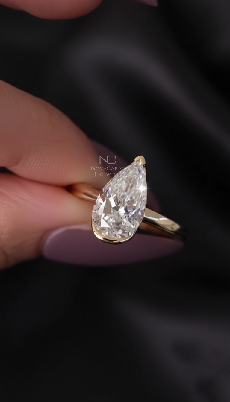 3 CT Pear Cut Moissanite Diamond Ring Pear Half Bezel Set Engagement Ring 14k Solid Gold Ring Teardrop Diamond Promise Wedding Ring for Her