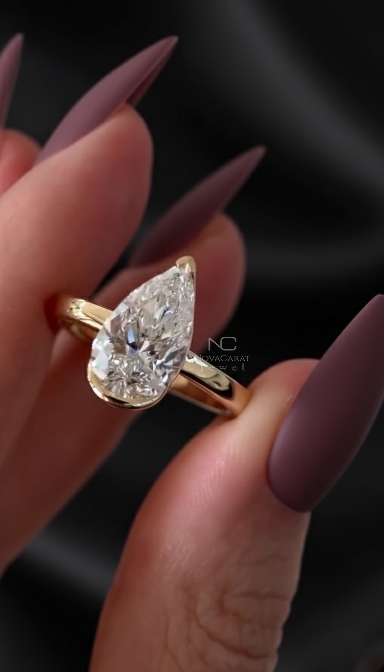 3 CT Pear Cut Moissanite Diamond Ring, Half Bezel Set Engagement Ring, 14k Solid Gold Pear Solitaire Ring, Wedding Ring, Anniversary Gift, Pear Cut Ring, Moissanite Ring, Half Bezel Ring, Solitaire Ring, Pear Diamond Ring, Yellow Gold Ring, Unique Gift for Her, Dainty Bridal Ring, Anniversary Ring, Promise Ring for Her