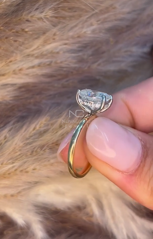 3ct Cushion Cut Moissanite Engagement Ring, Hidden Halo Engagement Ring, Moissanite Engagement Ring, Anniversary Gifts, Solitaire Proposal Ring.