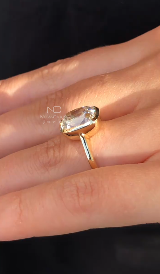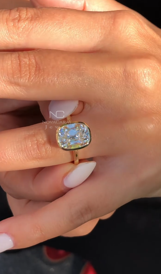3ct Old Mine Cushion Cut Solitaire Ring, Bezel Set Moissanite Ring, OMC Diamond Ring for Her, Wedding Ring, Anniversary Gift, Engagement Ring For Her