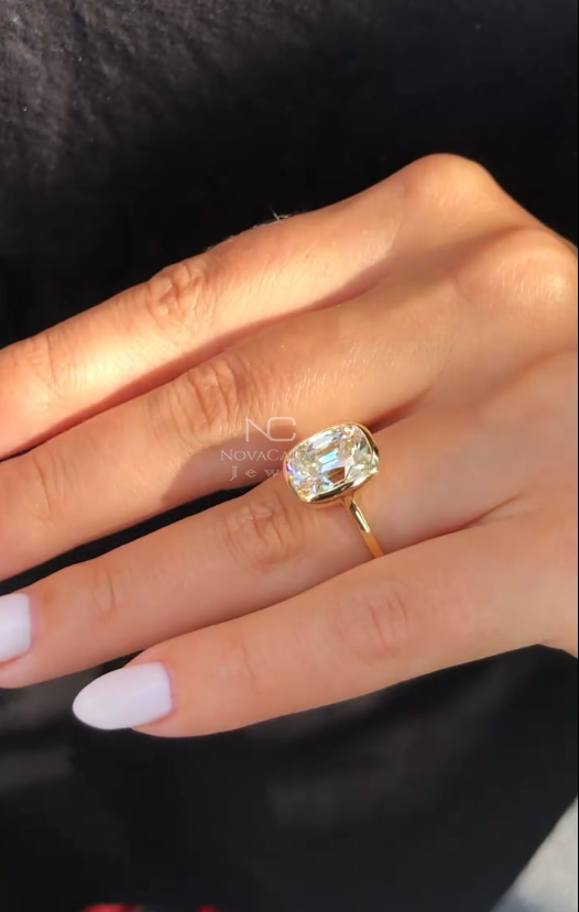 Engagement Ring, Moissanite Ring, Moissanite Wedding, Elongated Cushion, Solid Gold Ring, Old Mine Cushion Cut, Handmade Moissanite, Omc Diamond Ring, Bezel Set Ring, Solitaire Rings, OMC Moissanite Ring, Old Mine Cut Ring, Omc Moissanite
