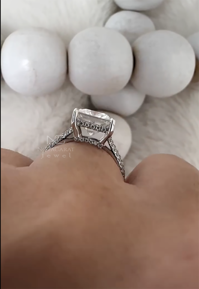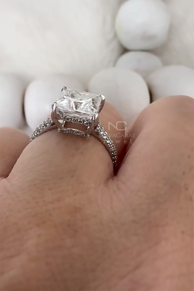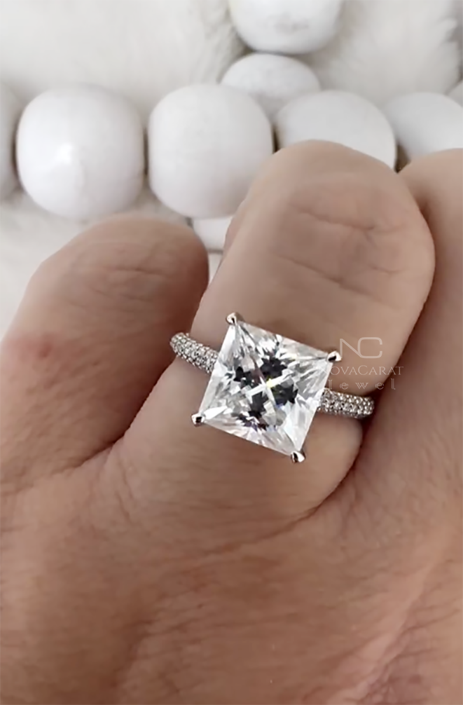 Princess Cut Ring, Moissanite Ring, Engagement Ring, Hidden Halo Ring, Pave Band Ring, Gold Engagement Ring, Solid Gold Ring, 3ct Moissanite, 1ct Princess Cut, Moissanite Jewelry, Bridal Ring, Wedding Ring, Pave Engagement Ring