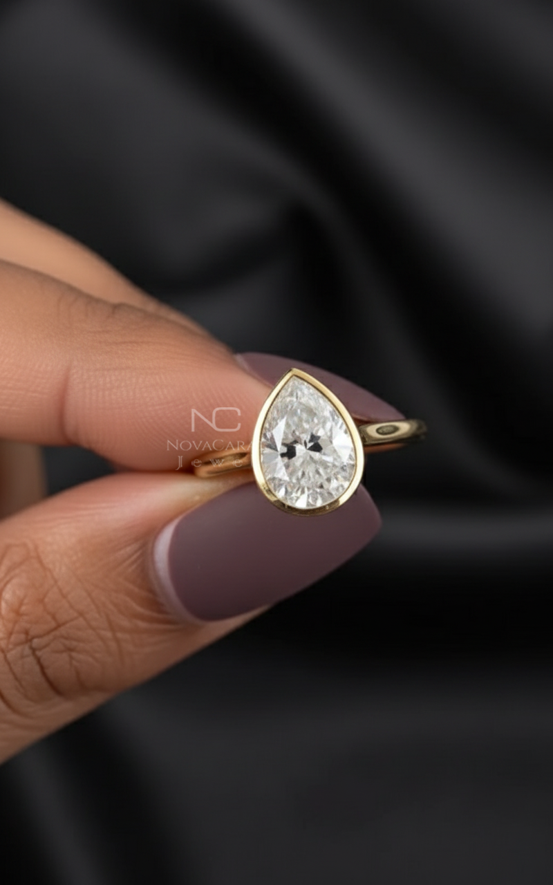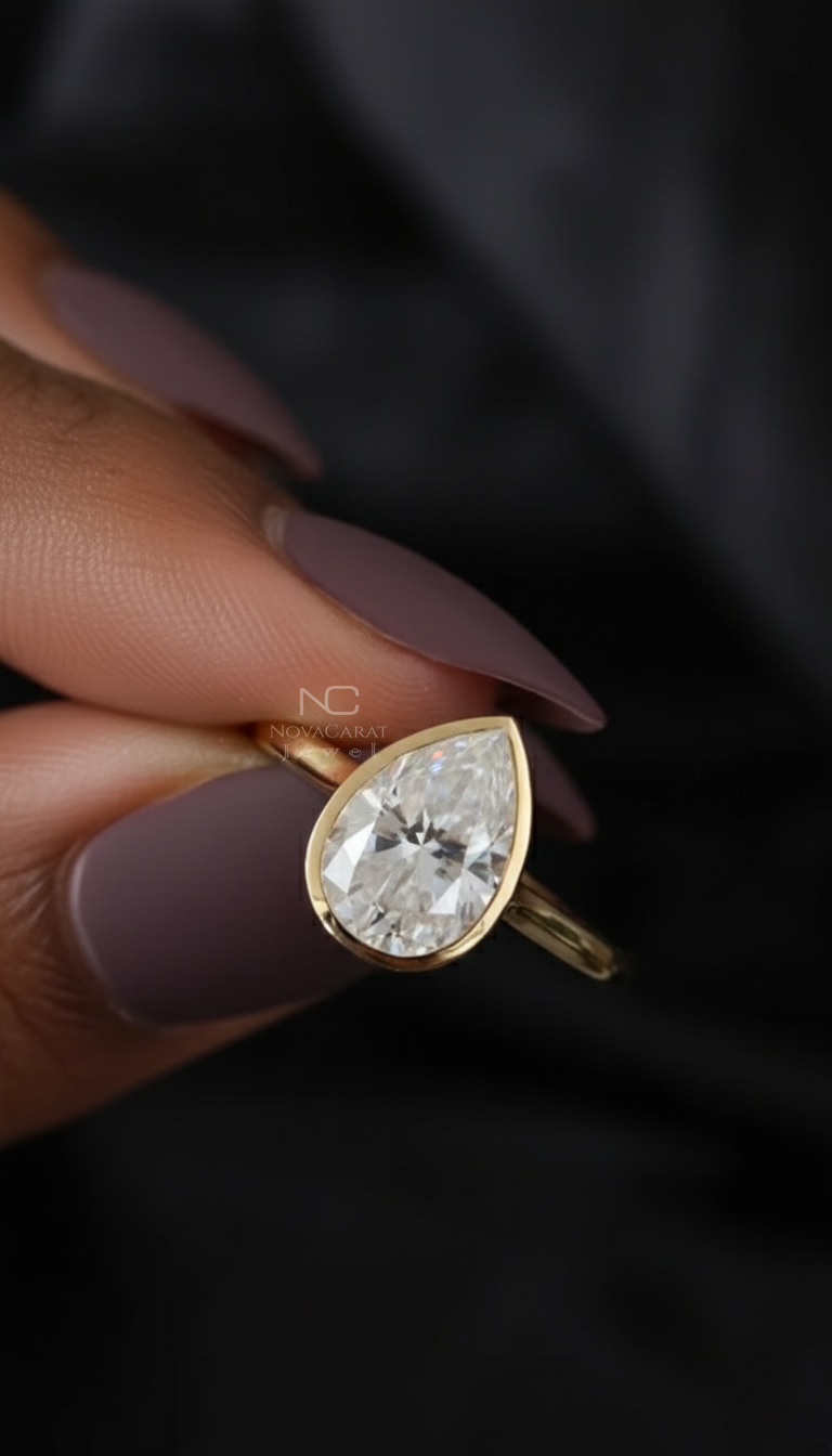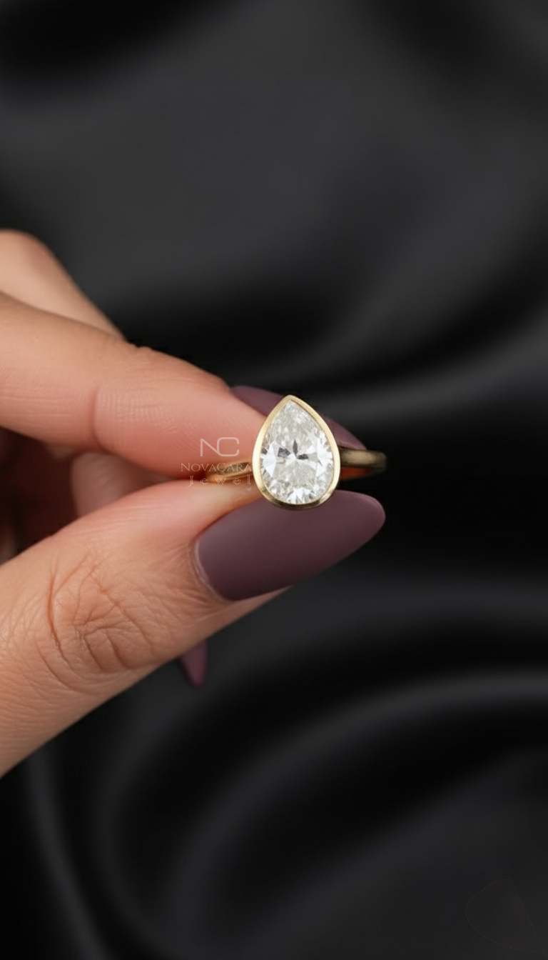 Pear Cut Eco Friendly Diamond Solitaire Ring, Bezel Set Moissnite Diamond Engagement Ring, 14K Solid Gold Moissnite Diamond Ring, Proposal Gift
