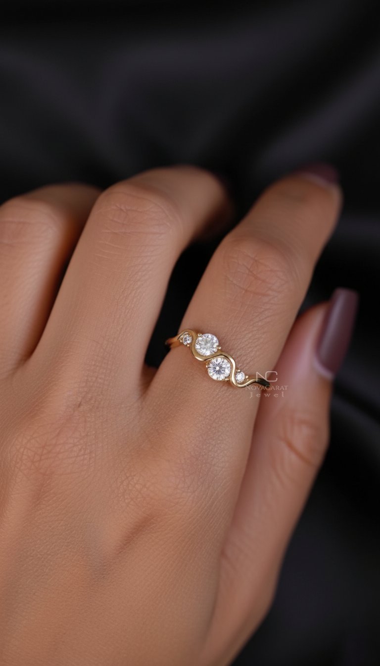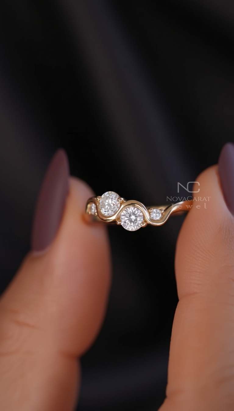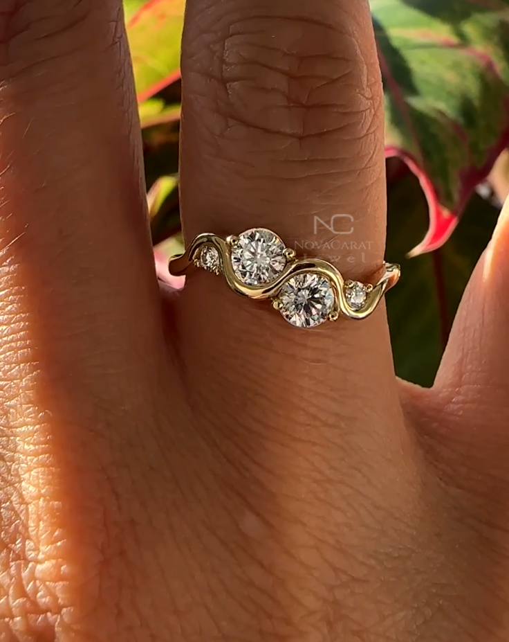 Round moissanite Diamond Curved Engagement Ring, Twisted Design Unique Ring, Diamond Waved Ring, Minimalist Ring, Anniversary Gift Ring