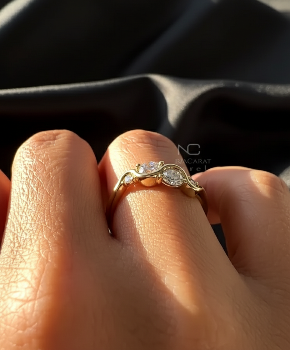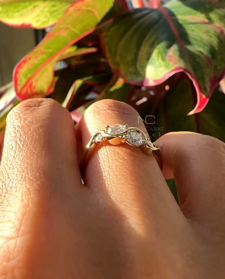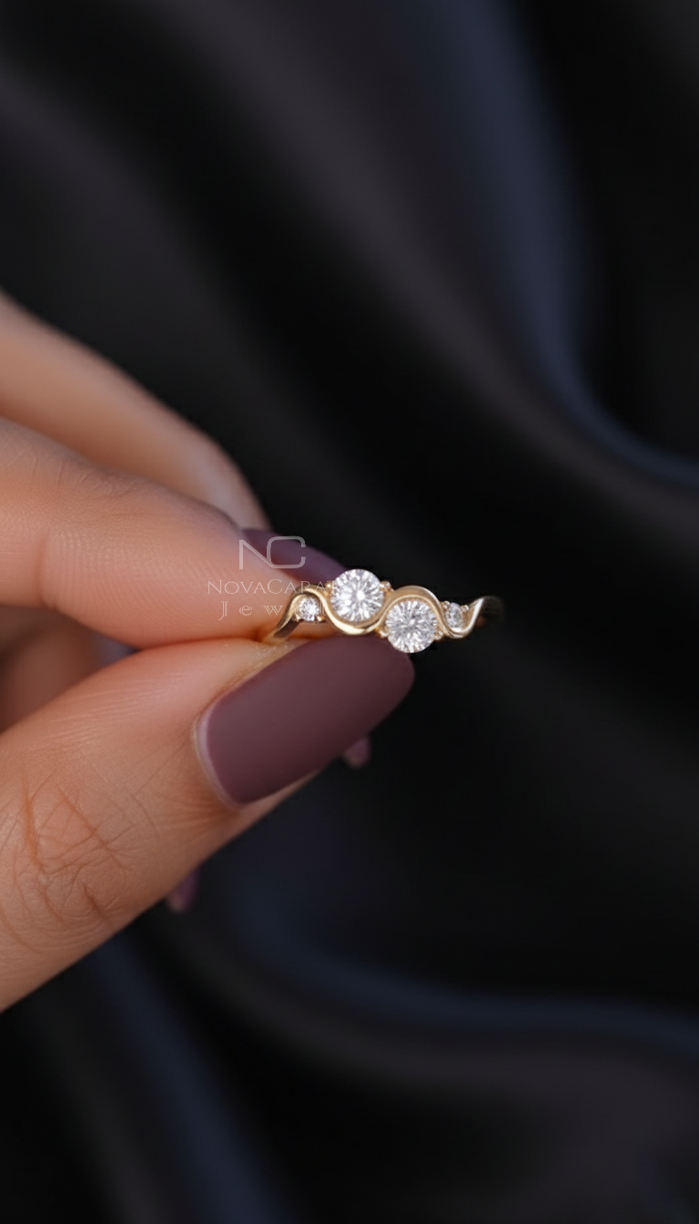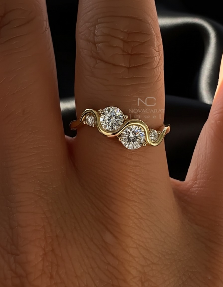 Round moissanite Diamond Curved Engagement Ring, Twisted Design Unique Ring, Diamond Waved Ring, Minimalist Ring, Anniversary Gift Ring