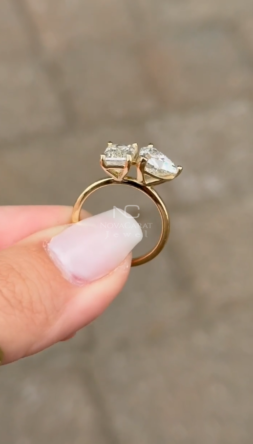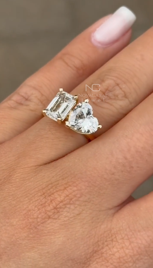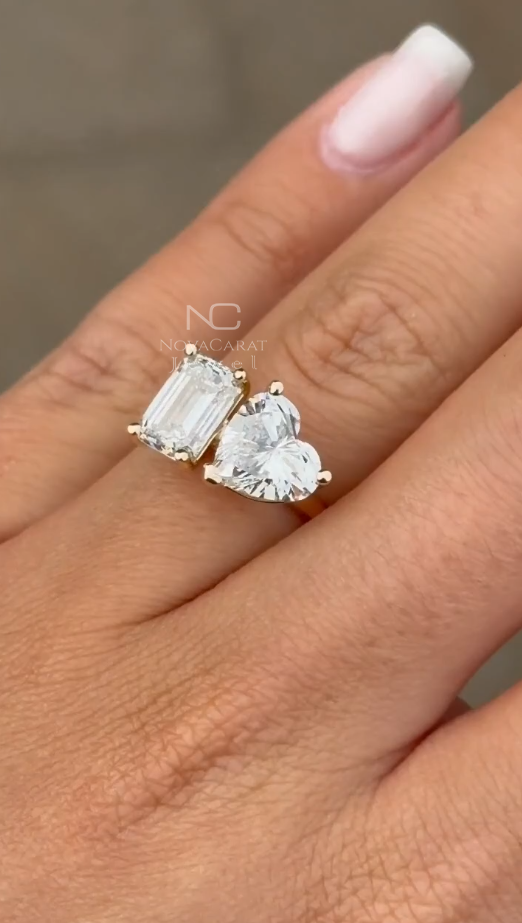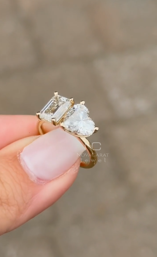Toi Et Moi Ring, Engagement Ring, Wedding Ring, 18k Gold Ring, 14k Gold Ring, 925 Silver Ring, Moissanite Ring, Diamond Simulated Ring, Heart Cut Moissanite, Emerald Cut Ring, Dainty Gift Ring, Two Stone Ring, Double Stone Ring