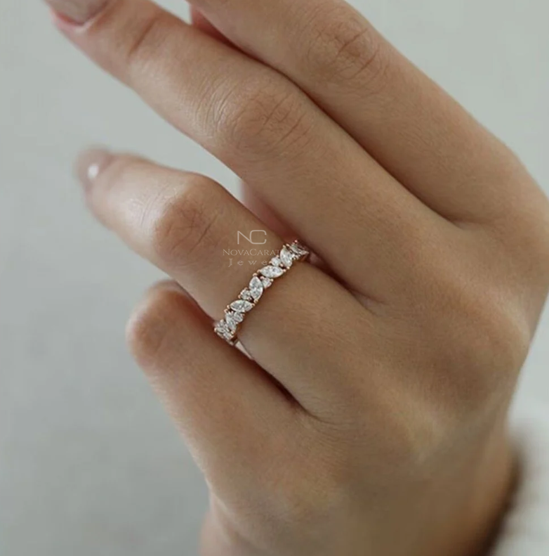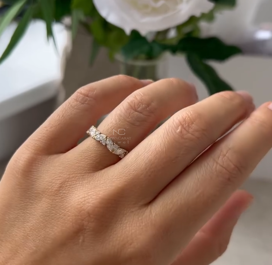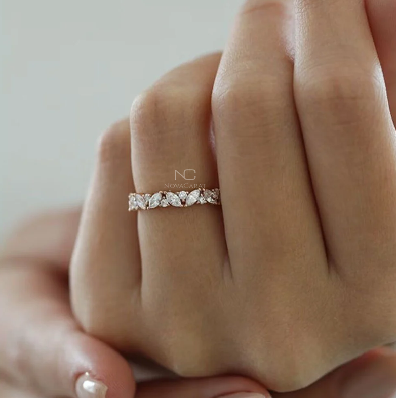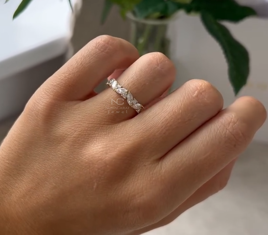 Marquise Round Moissanite Wedding Band, Full Eternity Moissanite Bridal Band/ Cluster Set Engagement Band For Her, gift for women, Cluster Set Engagement Band For Her