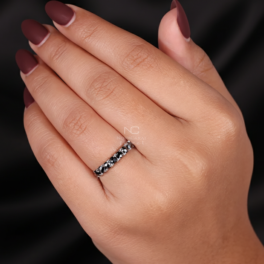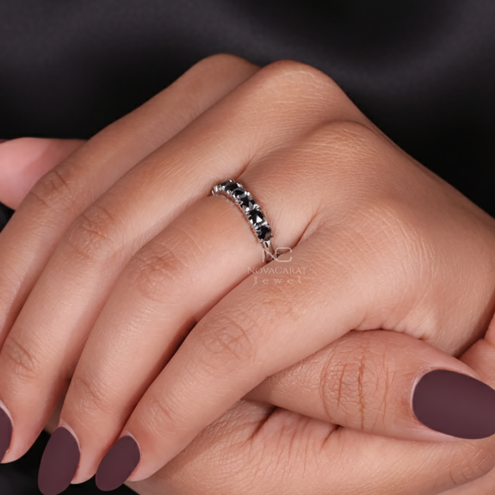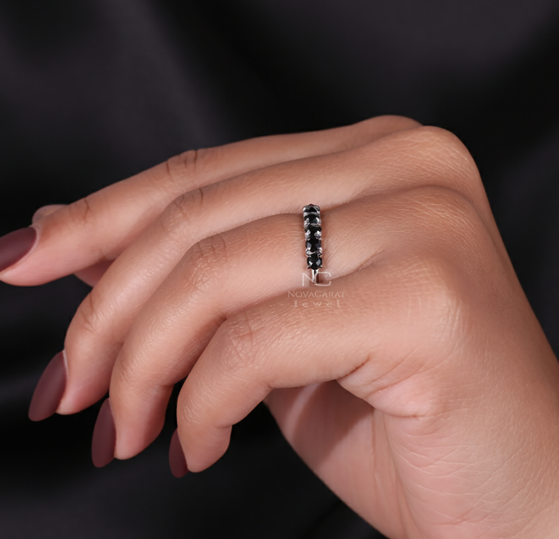 Sevan Stone Ring, Black Diamond Band, Dainty Stacking Ring, Minimalist Ring, Rose Gold Ring, Wedding Band, Black Stone Ring, Moissanite Ring, Half Eternity Band, Anniversary Gift, Gemstone Ring, Everyday Ring,