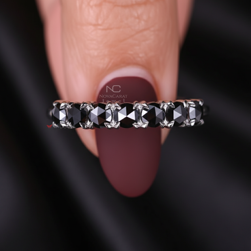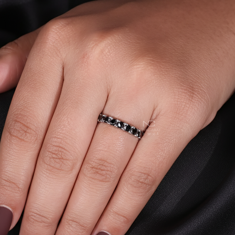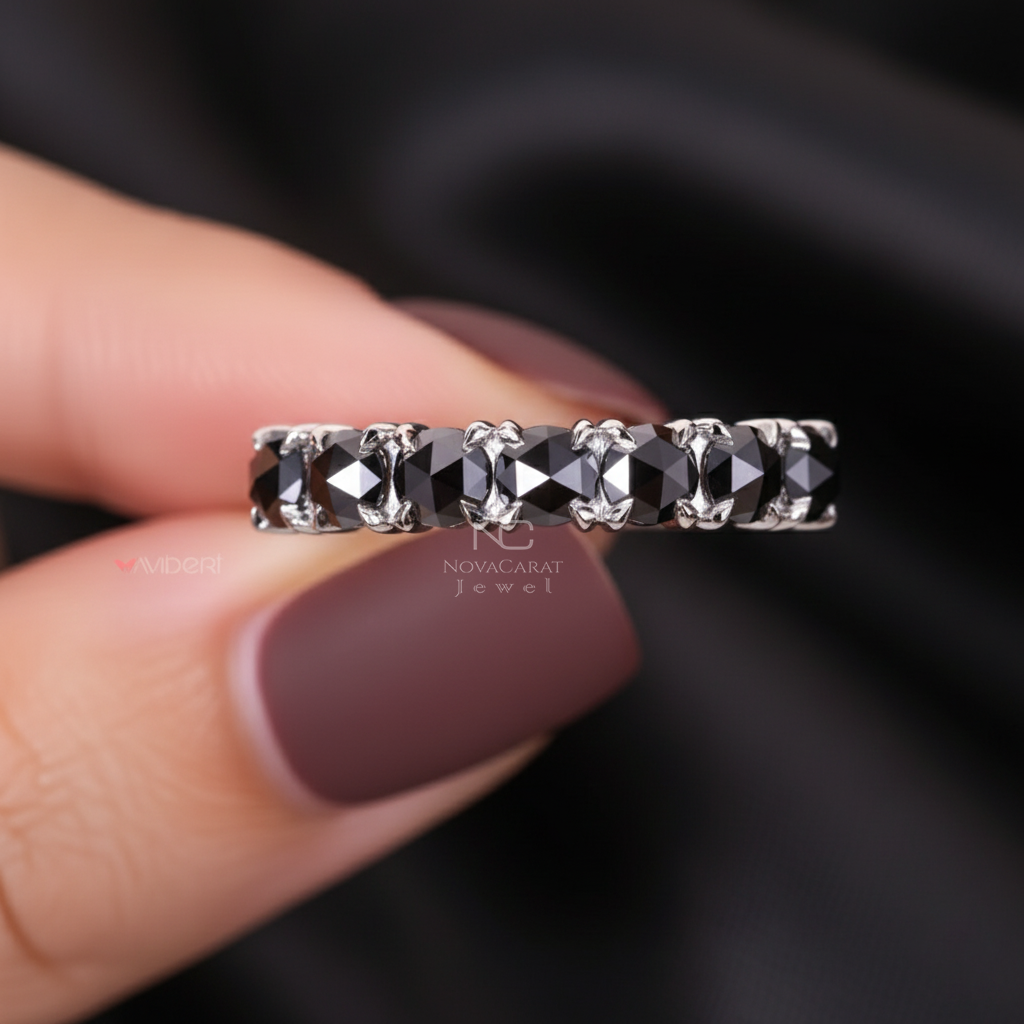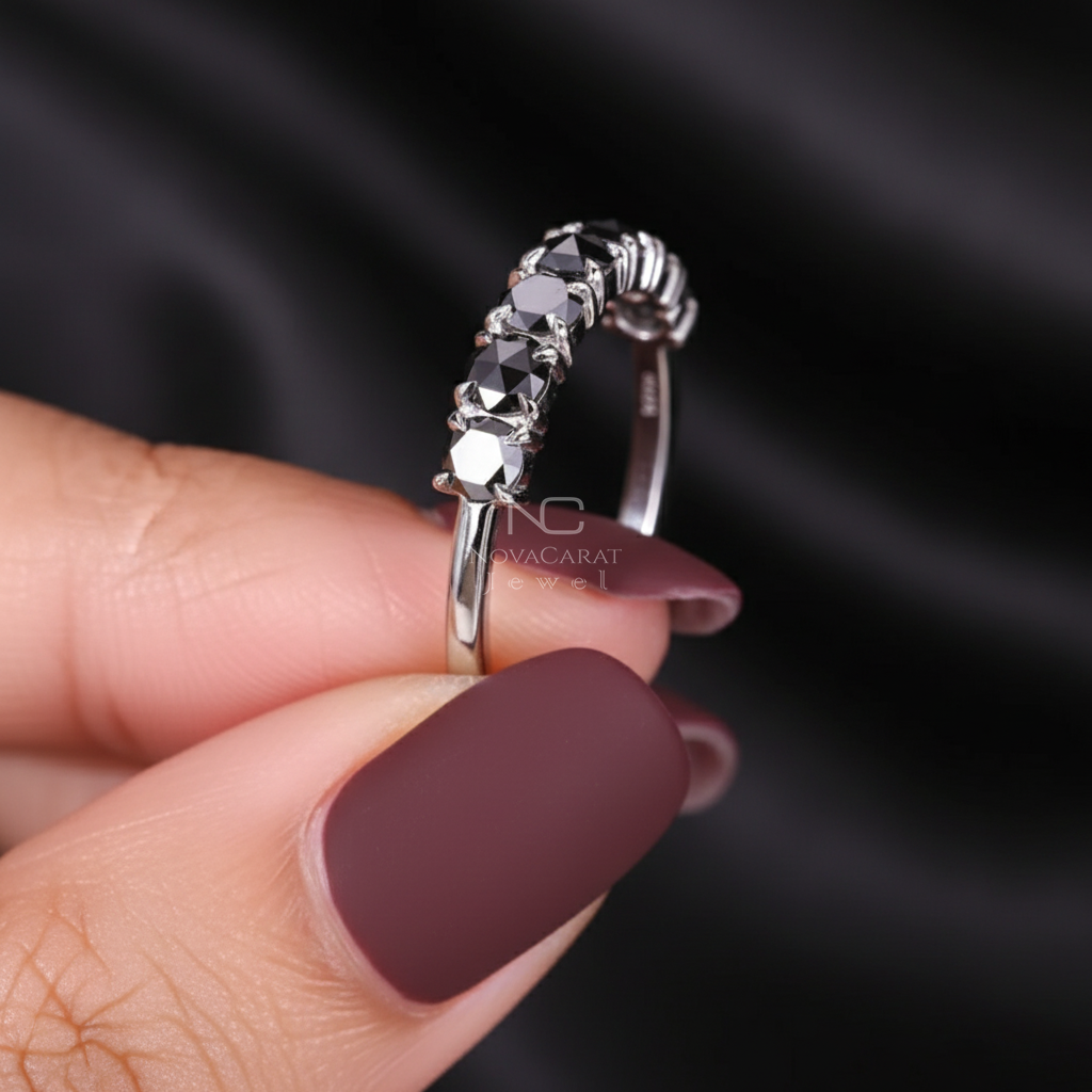 Sevan Stone Ring, Black Diamond Band, Dainty Stacking Ring, Minimalist Ring, Rose Gold Ring, Wedding Band, Black Stone Ring, Moissanite Ring, Half Eternity Band, Anniversary Gift, Gemstone Ring, Everyday Ring,
