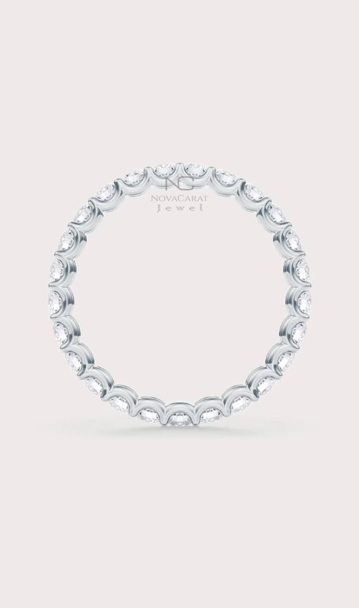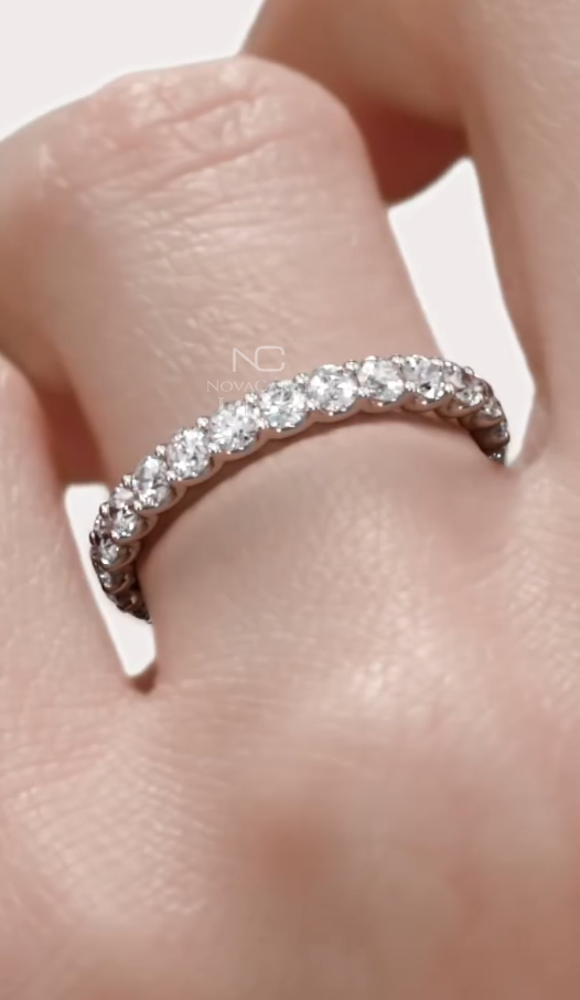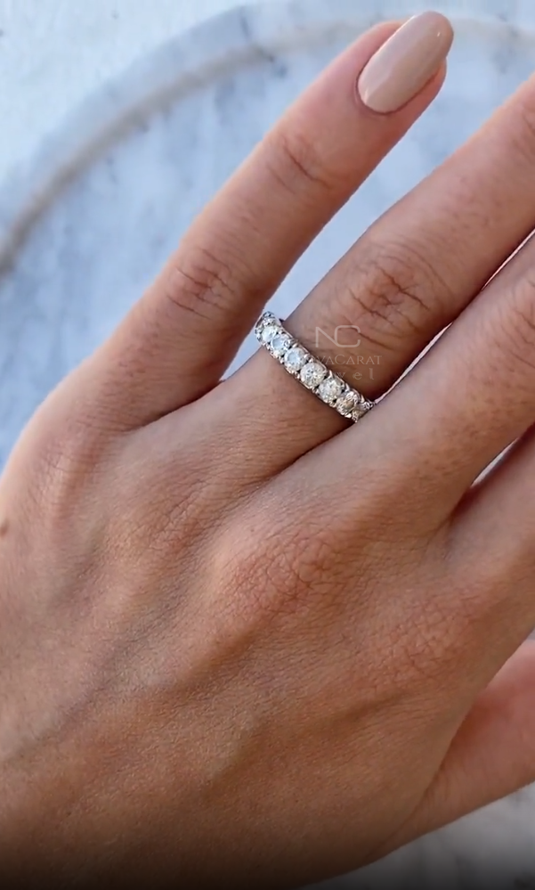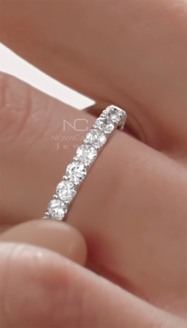 Round Cut Fully Eternity Band Moissanite Diamond Wedding Band Gold Matching Band Silver Stacking Ring Promise Bridal Ring Anniversary, 14K White Gold Band